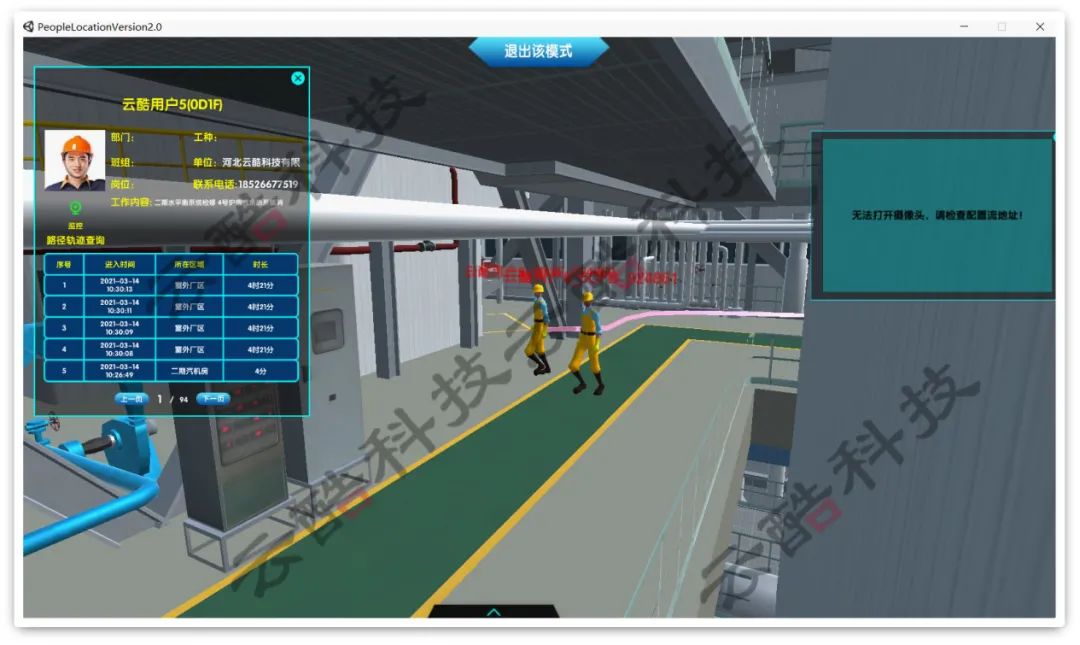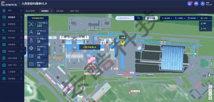 當(dāng)作業(yè)人員攜帶電子標(biāo)簽在現(xiàn)場作業(yè)時,系統(tǒng)后臺會實時解算人員位置并在二維/三維地圖上顯示。被定位的人員支持按人員類型分顏色顯示,按人員類型顯示和隱藏,并根據(jù)實時定位,具有區(qū)域人員統(tǒng)計、區(qū)域進出統(tǒng)計、身份識別等功能。